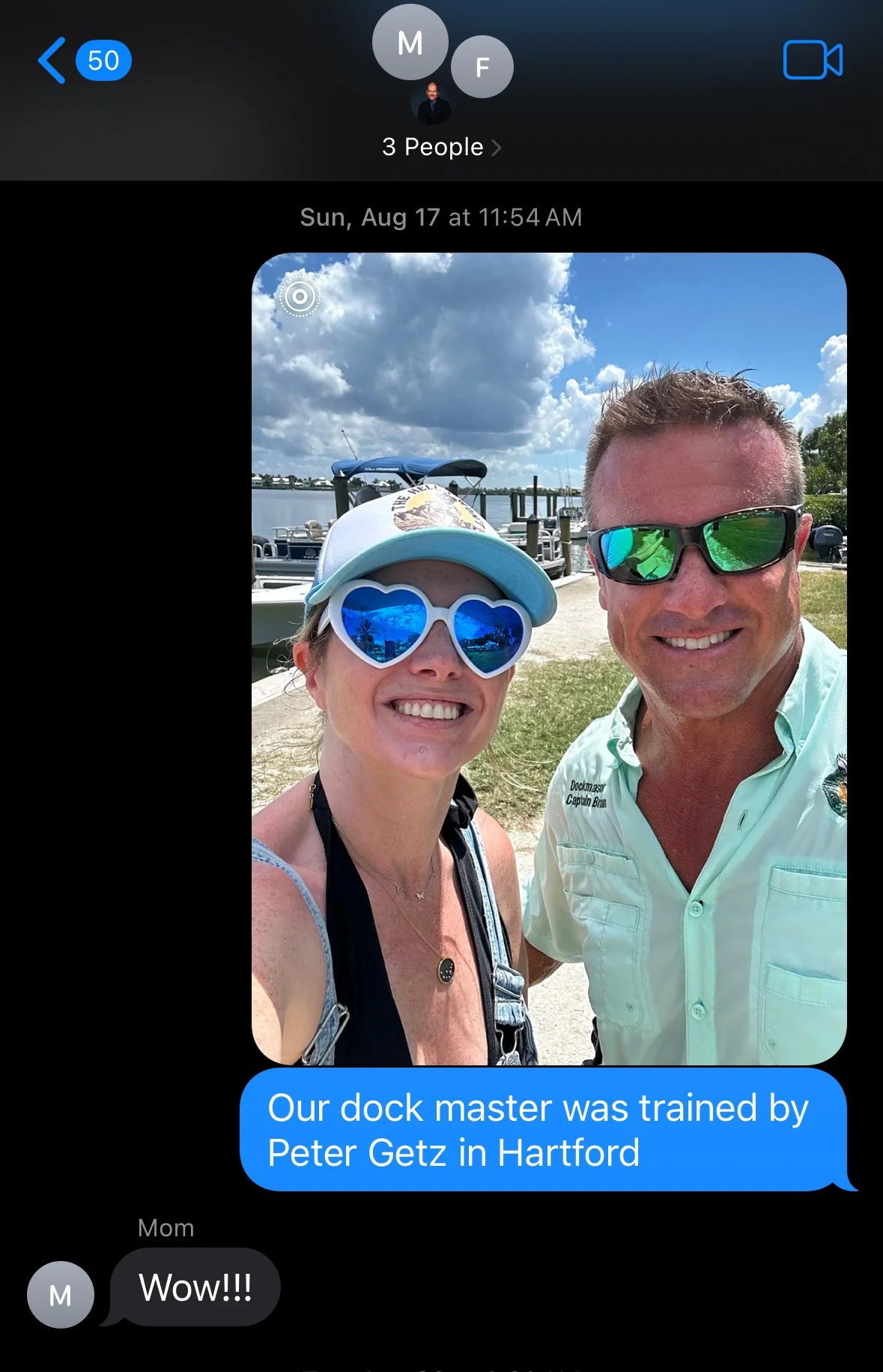 As we got off the boat, one of my friends commented saying the dockmaster was from Hartford, Connecticut.